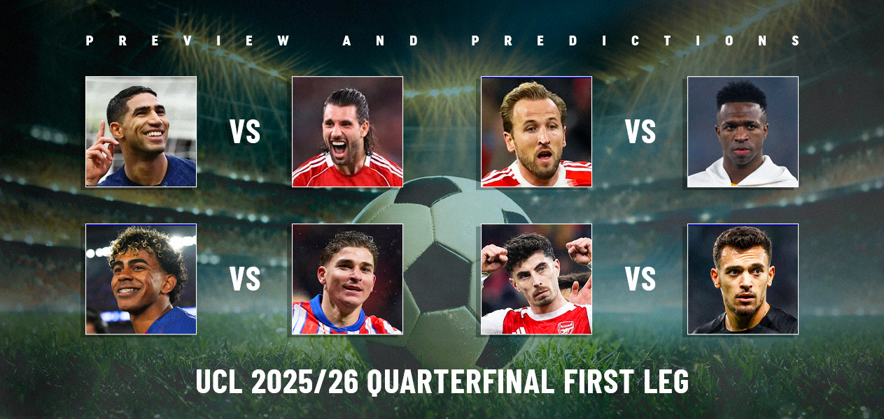 Here we take a look at the previews and predictions for the first leg fixtures of the 2025/26 UCL quarter-finals.